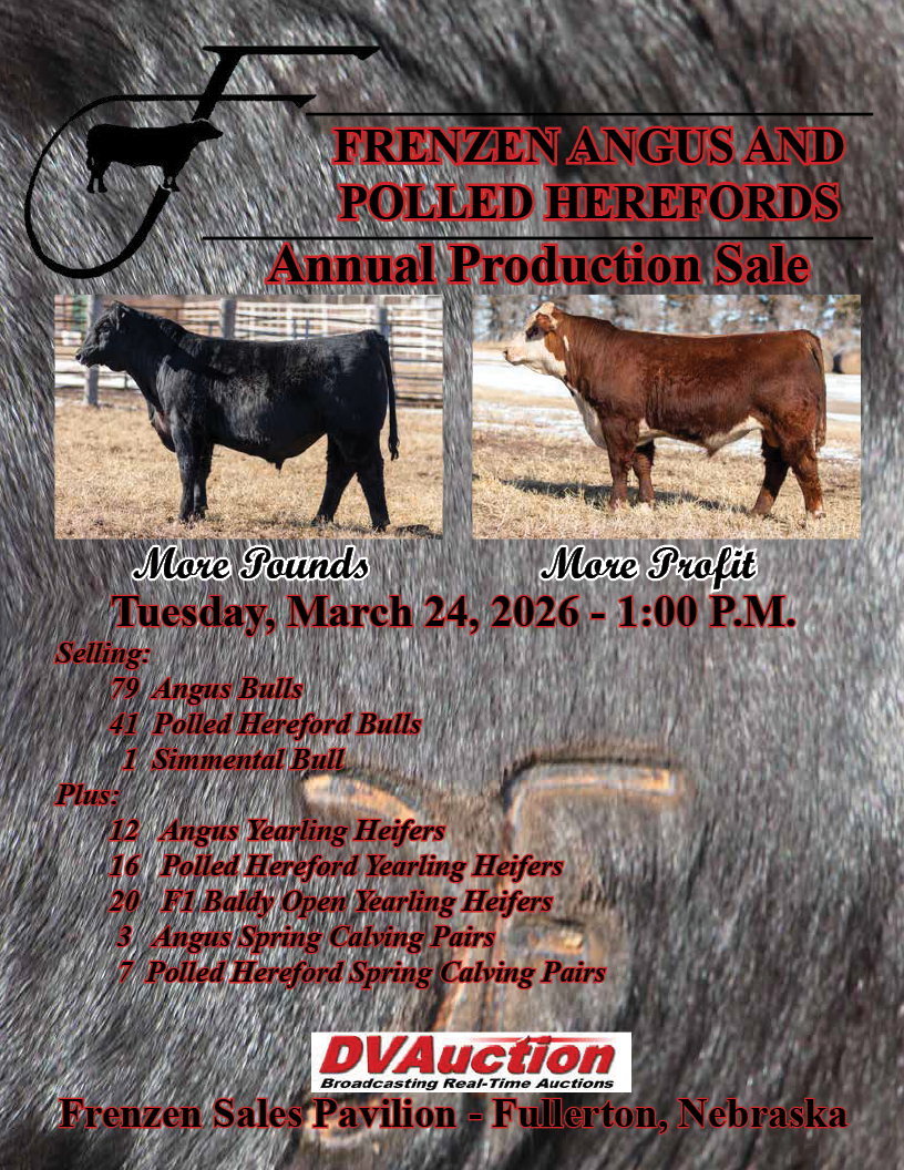 Galen Frenzen is gearing up for an upcoming cattle sale featuring various breeds and age groups, including 75 Angus bulls, 40 Herefords, one Semitol, along with yearling heifers and two-year-old pairs. The sale is scheduled for March 24th, utilizing both in-person and online platforms to accommodate weather-related constraints.